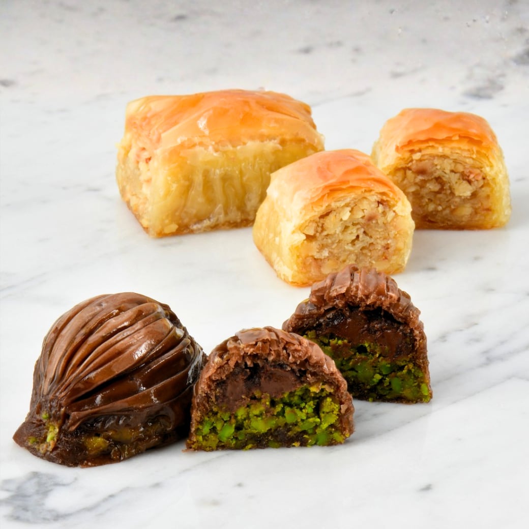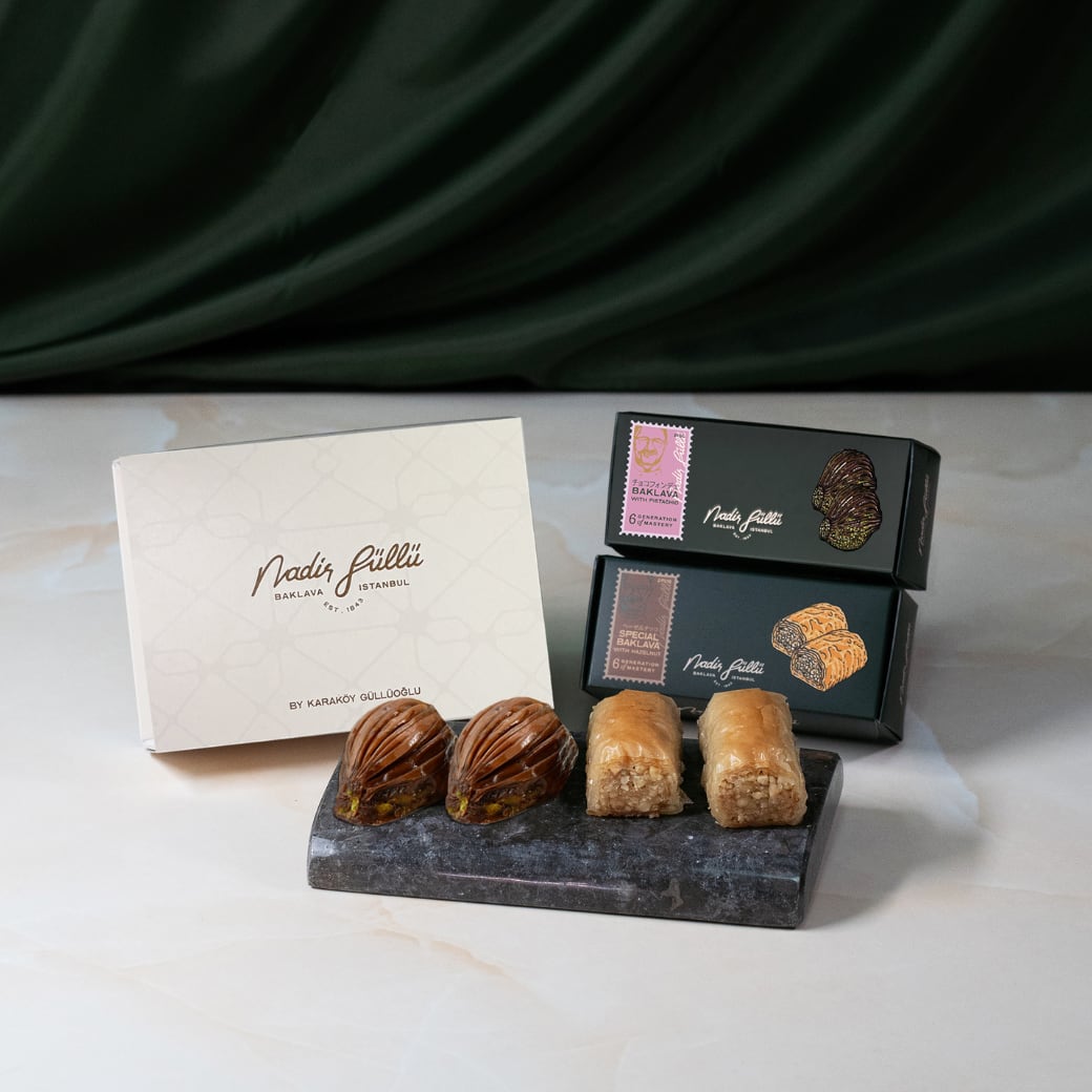 2個入りの小分けパッケージで、シェアにもぴったり。2種類の定番バクラヴァを食べ比べできる、贅沢なセットです。