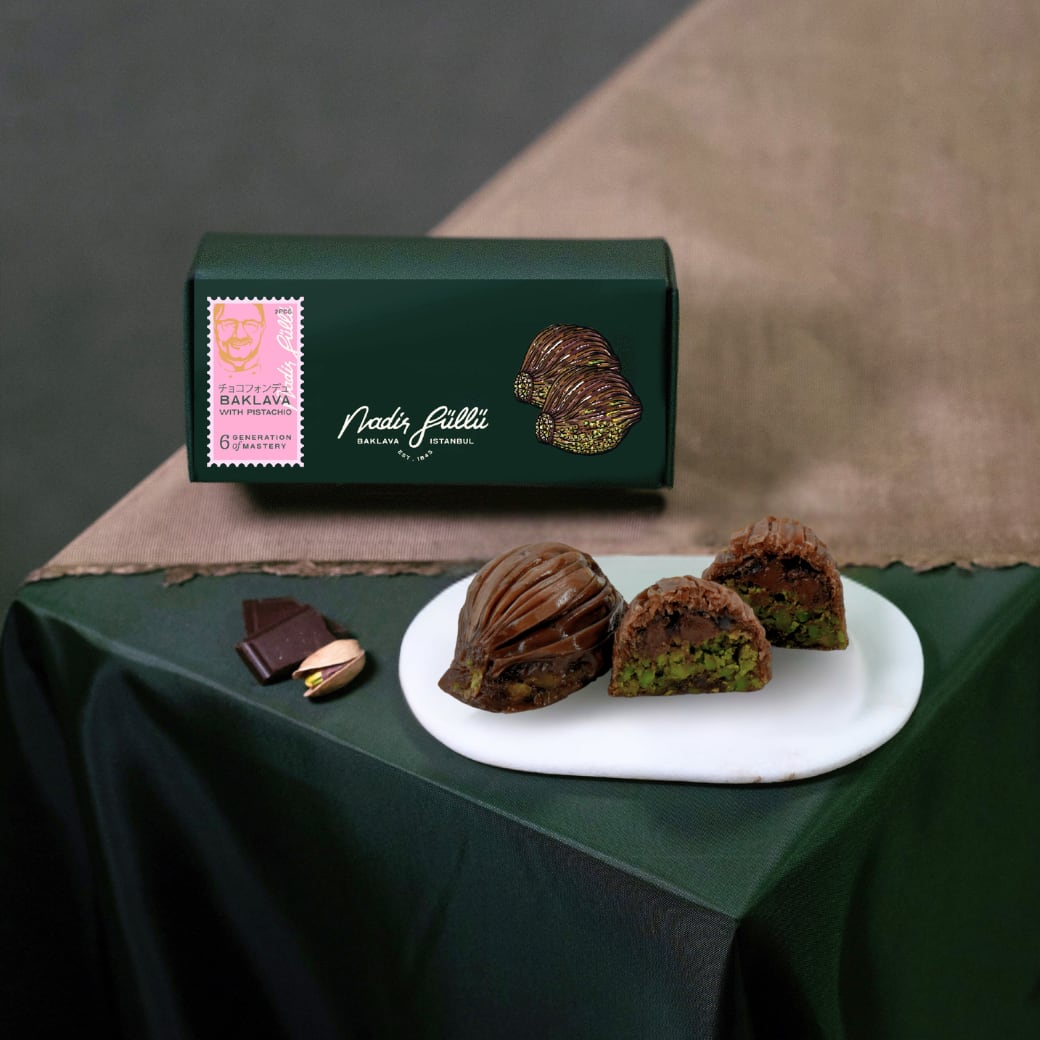 ぎっしり詰まったピスタチオと口どけの良いチョコレートが調和した、ひとつで贅沢な満足感を味わえる、日本のためにトルコでバクラヴァ職人が考案した特別なバクラヴァです。